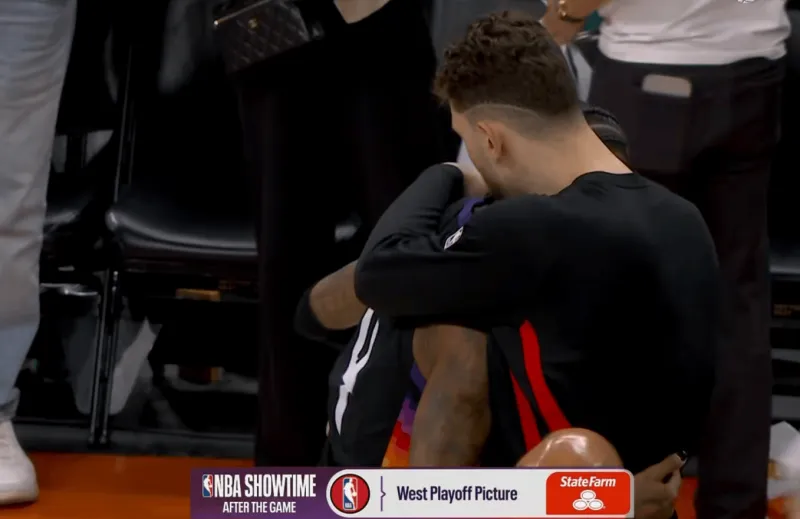 赛后,杰伦-格林在场边找到申京,两人互相拥抱示意。